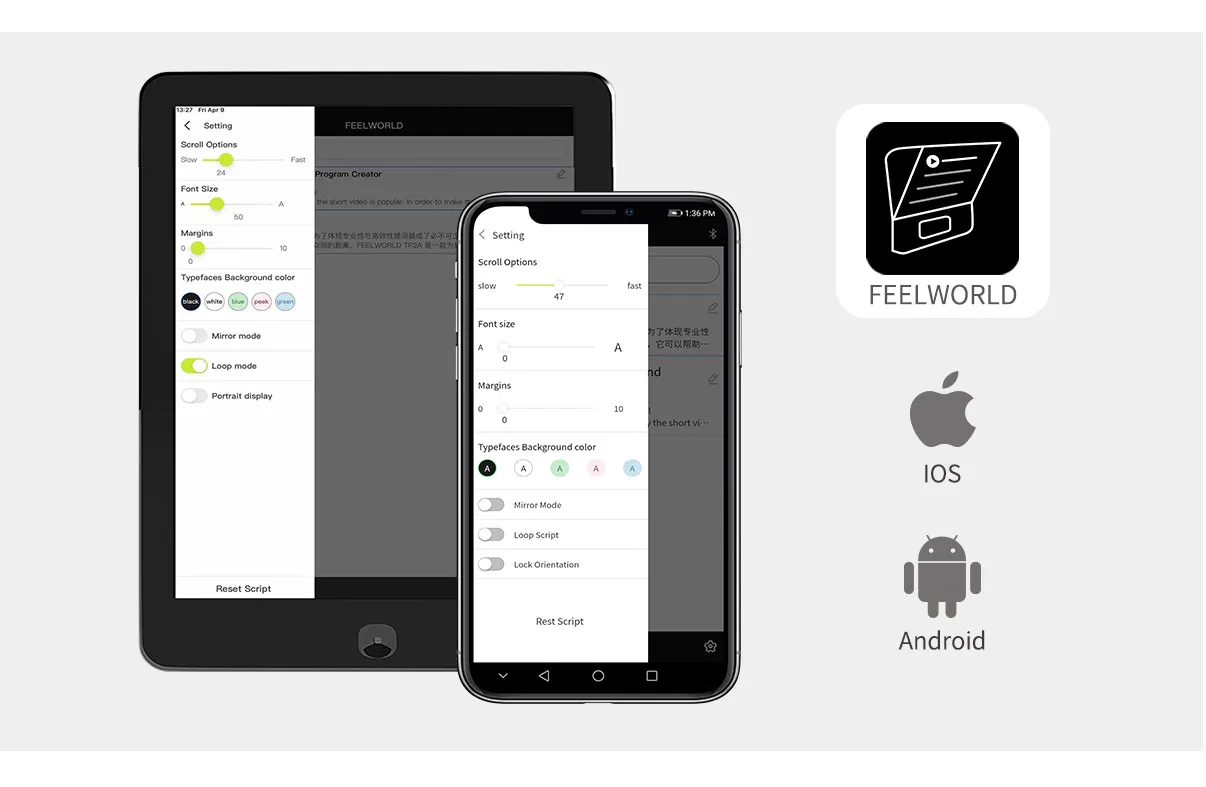 The exclusive prompting APP (name: FEELWORLD), can be downloaded in smartphone and tablet, compatiable with IOS & Android systems.