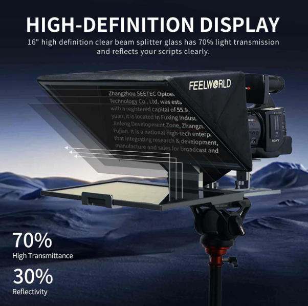FEELWORLD TP16 with larger beam splitter, easily installation, flexible control, made you speak in front of the camera with confidence, lesser on your script.Suitable for program recording, character interview, online course, vlog creation, commercial Ads shooting, ideal for video, program creators.