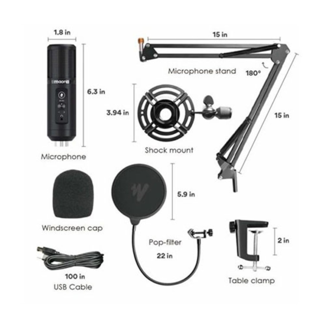 The arms stand and shock mount made of aluminum alloy, MAONO AU-PM422 Microphone can protect the pc microphone all-around. In addition, a pop filter and windscreen cap can lower wind and Saliva interference and make your voice clearer. The USB MAONO, AU-PM422 Microphone kit includes 1x condenser microphone, 1x adjustable sturdy arm, 1x desk mount clamp, 1x metal shock mount, 1x pop filter, 1x windscreen cap, 1x USB cable, and 1x manual instruction.