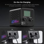 Tips: When charging with the DC port or Type-C port while using, the max power of the light is 40W. Please make sure that your charger and charging cable support charging with PD up to 65W. Charging cable is sold separately.