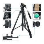 The Yunteng VCT-880 Aluminum Camera Tripod has an aluminum alloy tripod stand with lightweight and compact, sturdy, and durable. It also has a dual spirit level and three adjustment knobs design damping effect ball head which allows for any angle shooting, precise and efficient. The 3-section column leg with quick release locks, giving a more convenient leg handling, satisfying your wanted height when shooting. Detachable quick release plate for quickly connecting to camera or camcorder. Features with a pan-tilt-swivel head with bubble level. Come with carrying bag for easy portability, suitable for office, home, leisure activity, and traveling. Standard 1/4″ screw interface compatible with most digital cameras, fishing lights, etc. Versatile applications, suitable for office, home, leisure activities, and traveling. Suitable for most Digital cameras, DV, camcorders, and other small cameras, but not fit for DSLR cameras or other big cameras.
